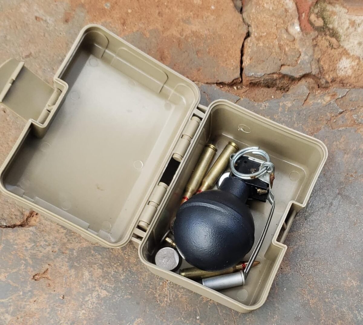 No interior do imóvel, os agentes encontraram ainda três munições de fuzil calibre 5.56, duas munições de pistola calibre .380 e a granada, que estava guardada em um recipiente plástico. A área foi isolada até a chegada da equipe de explosivistas do BOPE, que realizou a remoção segura do artefato.