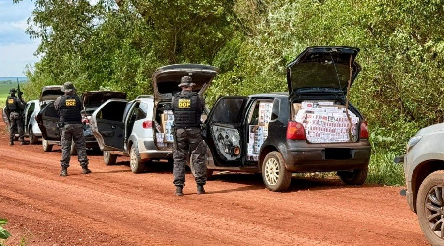 Policiais do DOF (Departamento de Operações de Fronteira) apreenderam, em Laguna Carapã, quatro veículos carregados com pneus e cigarros contrabandeados do Paraguai. Na ação, quatro homens, de 25, 34, 40 e 45 anos, foram presos. Os militares faziam bloqueio em uma estrada vicinal do município, próximo à região do Passo Kau, quando abordaram os condutores de um Fiat Palio, um Fiat Siena, um Gol e um Polo, que seguiam juntos.